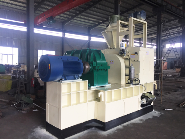 干粉壓球機工作工程中物料首先經過預壓裝置進行預壓排氣,使物料更加密實,然后經過高壓干粉壓球機兩對輥進行強力擠壓,成品由皮帶輸送機輸出。輥皮材質為9Cr2Mo鍛造制作,磨損后可更換,壓球機液壓保護裝置,避免設備遭硬物沖擊而損壞。